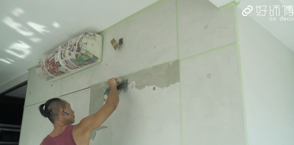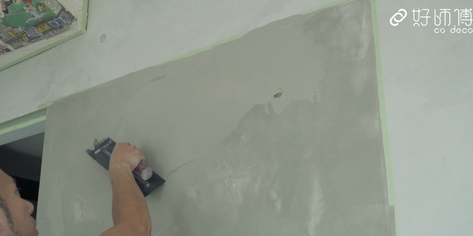 製作仿清水混凝土墻時(shí),要分叁層把水泥批上墻身,第一層是為打底層